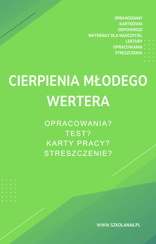 Materiały do „Cierpienia młodego Wertera” – Sprawdziany z odpowiedziami, test, karty pracy, opracowanie, streszczenie. Idealne wsparcie dla nauczycieli oraz uczniów przygotowujących się do egzaminów. Sprawdź teraz i popraw efektywność nauczania!