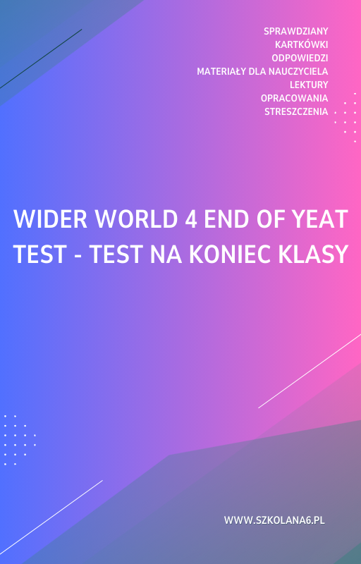 Wider World 4 End of Yeat Test – test na koniec klasy – Pobierz już teraz sprawdzian w formacie PDF! Kompletny zestaw pytań z odpowiedziami, idealny dla uczniów i nauczycieli.