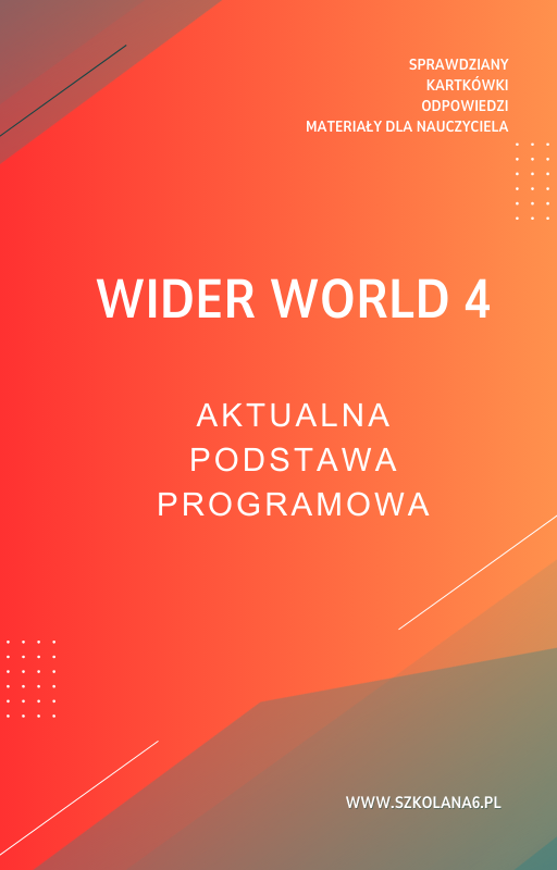 Szukasz wysokiej jakości materiałów edukacyjnych dostosowanych do podręcznika „Wider World 4„? Nasze Wider World 4 sprawdziany oraz książka nauczyciela oferują doskonałe wsparcie zarówno dla uczniów, jak i nauczycieli. Oferujemy również pomoce naukowe, które idealnie wspierają naukę i przygotowanie do egzaminów.
