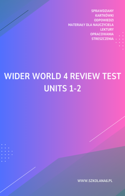 49,99 złWider World 4 Review Test Units 1-2 – Pobierz już teraz sprawdzian w formacie PDF! Kompletny zestaw pytań z odpowiedziami, idealny dla uczniów i nauczycieli.